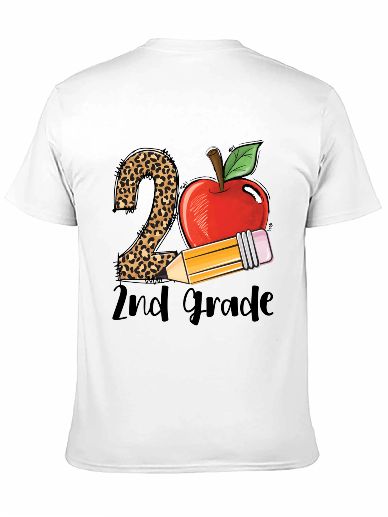 Show off your love for teaching with this stylish 2nd grade teacher t-shirt! This black tee features a playful design with a leopard print '2', a bright red apple, and a pencil accent, along with the words '2nd Grade'. Perfect for educators, this comfortable shirt is made for everyday wear in the classroom or casual outings. This t-shirt is a great way to show your school spirit and inspire your students. A perfect gift for teachers!