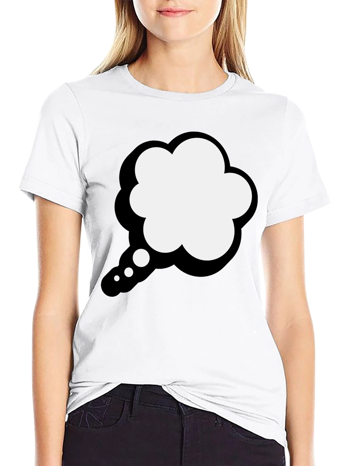 Express your inner thoughts with this unique black t-shirt. Featuring a bold, eye-catching design of a white and black thinking cloud, this tee is perfect for those who love to stand out from the crowd. Made from soft, breathable fabric, it offers both comfort and style. Ideal for casual wear, this shirt is a great conversation starter and lets you showcase your personality. Whether you're relaxing at home or out with friends, this t-shirt will keep you looking and feeling great. Get yours today and let your thoughts take flight!