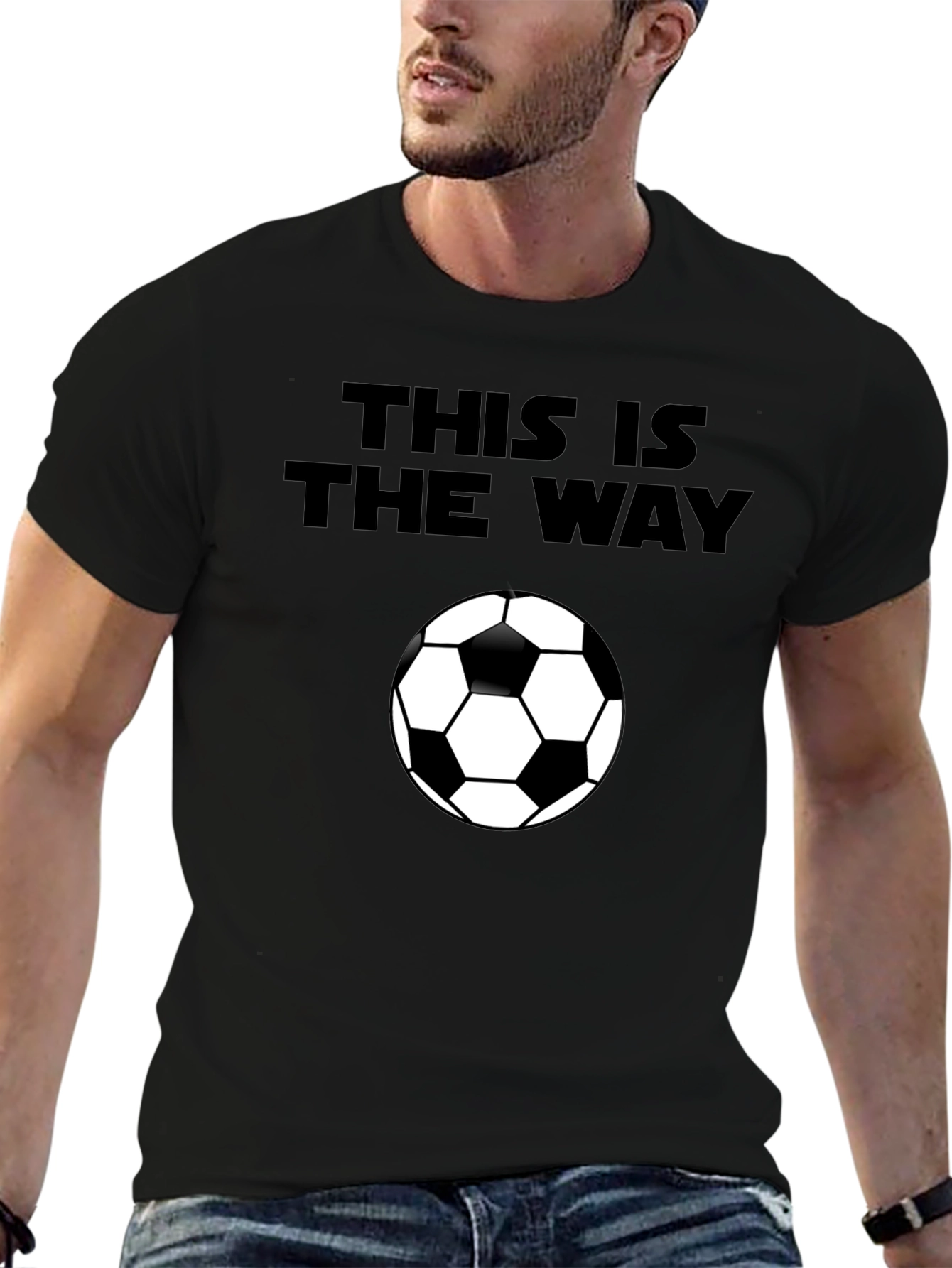 Show your love for soccer with this stylish black t-shirt. Featuring the text "THIS IS THE WAY" above a classic black and white soccer ball design, this shirt is perfect for players and fans alike. The clean, bold graphics stand out against the dark fabric, making a statement on and off the field. Made from a comfortable, breathable material, it's ideal for wearing during games, practices, or casual outings. This unique tee combines your passion for the game with a trendy look.